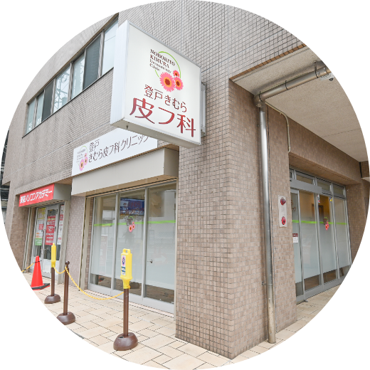 小田急線、JR線南武線登戸駅より徒歩2分の登戸きむら皮フ科クリニックです。